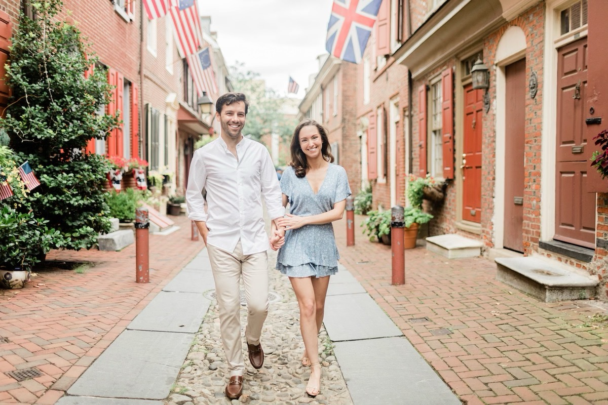 We first met in 2019 in Center City. 3 years worth of memories later, roaming through the Baths of the BVI, getting caught in the rain on the streets of Paris, keeping (Jenn) calm at a Flyers game, decorating for oh so many holidays, building out the menu in our kitchen, admiring books of listed allergens in the pubs of London, love lost and love gained, gardens laid and rooms painted, and hanging with Huxley (dog) and Finn (cat) around the house, we’re excited to say “I Do” this August.